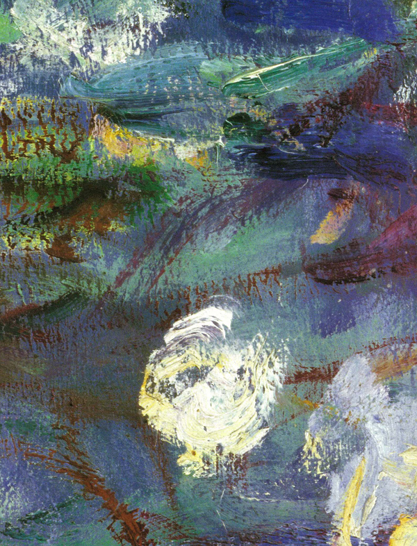 シルバーホワイトを大胆に使い、画面に力強さを与えています。不透明にも半透明にも使えるのがシルバーホワイトの利点です。画面上での混色も美しく、油絵らしい見事な仕上がりになっています。