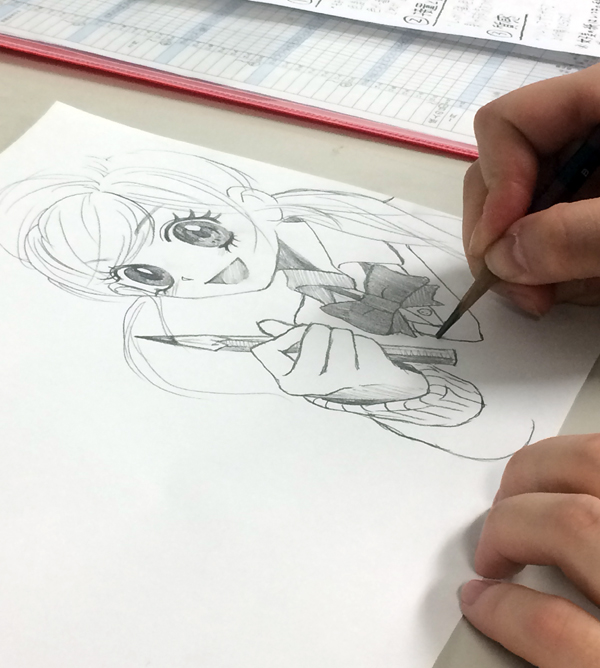 ↓ さすが芸大生。みんなに届けるための『りぼん』風のメッセージづくりです。顔はうつっていませんが、先生真剣です、、そして早い。