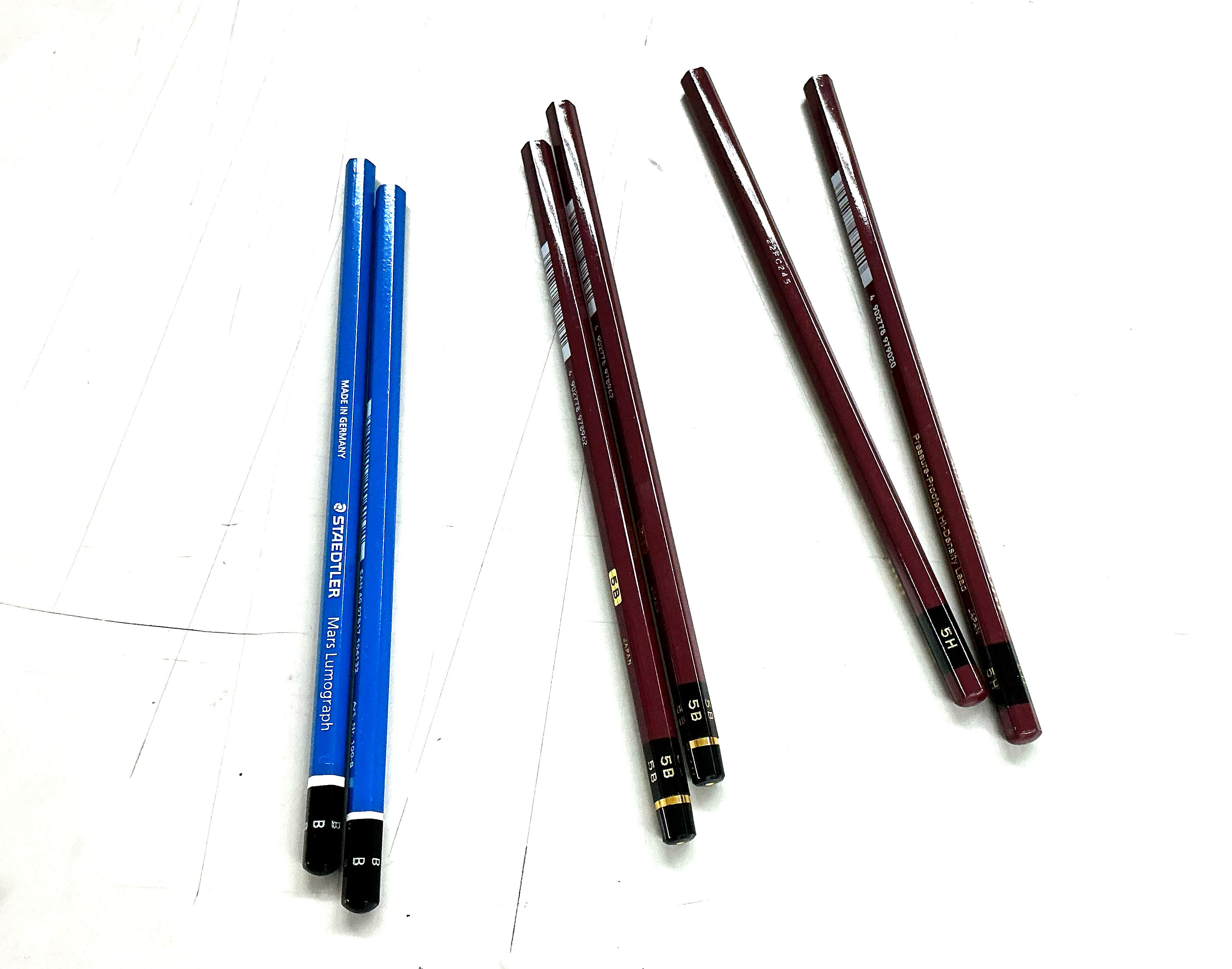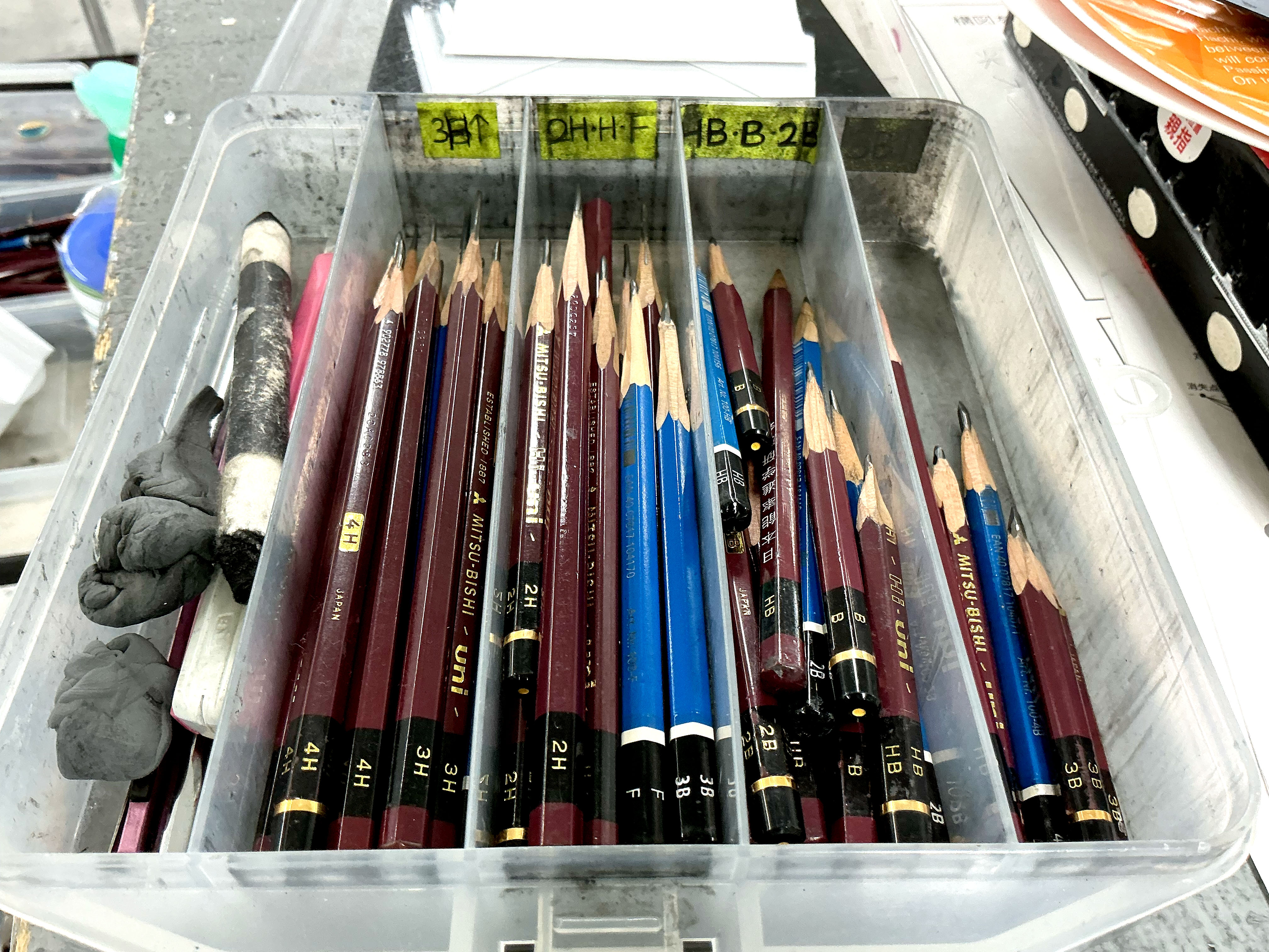 渋谷校では最初に買わせるときに4Hから4Bまでの購入を進めていますが、実際にはもう少し鉛筆の硬さの幅はあったほうが良いと思います。また同じ硬さの鉛筆でも2~3本は持っていたほうが良いと思います。