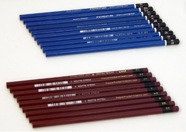 上にある青いのがステッドラー、下のエンジ色のがユニ