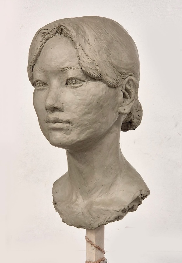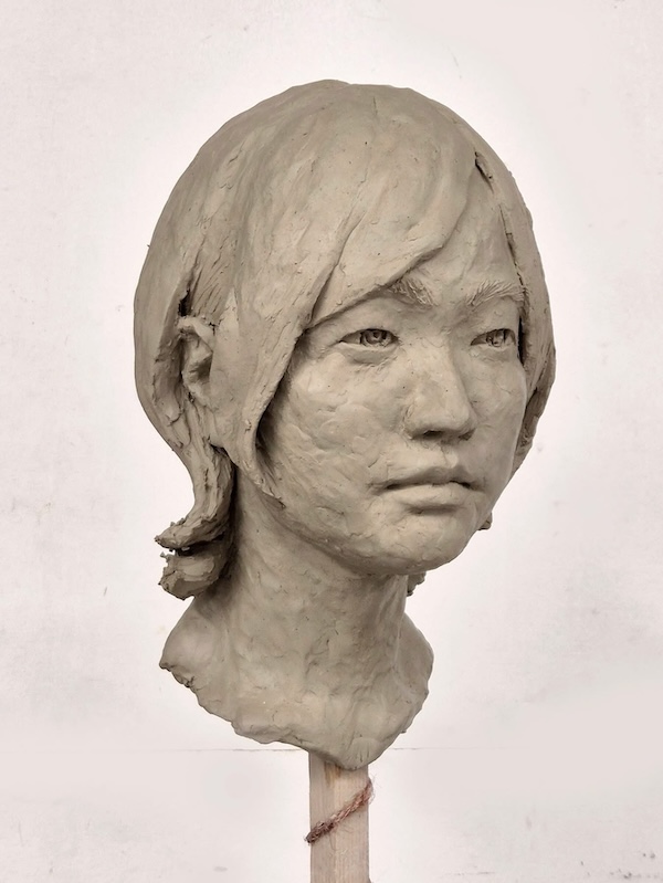 続いて自刻像です。今までで一番本人の印象を出せたのではないでしょうか。顎周り、小鼻周り、目周りのカタチについての理解が今回で深まったのではないかなと思います。目の印象も自然で良いです。髪の毛の表現についてはここからさらに研究していけるとさらに良くなると思います。