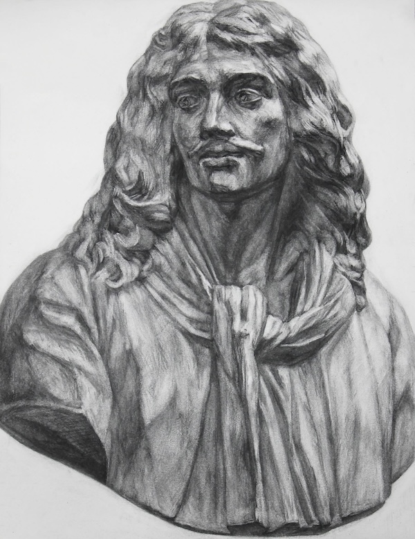 続いてモリエールです。途中経過を見ていないので厳密には分かりませんが、本人の話を聞く限りとても良いリズムでできていたのではないかなと思います。毎回言うことですが、良い時も悪い時もその時の制作リズム、メンタリティがどうだったのかをしっかりと反芻して思い返すようにしてください。そうすることで良き時の打率がもっと上がるんじゃないかなと思います。このデッサンは良きですよ!