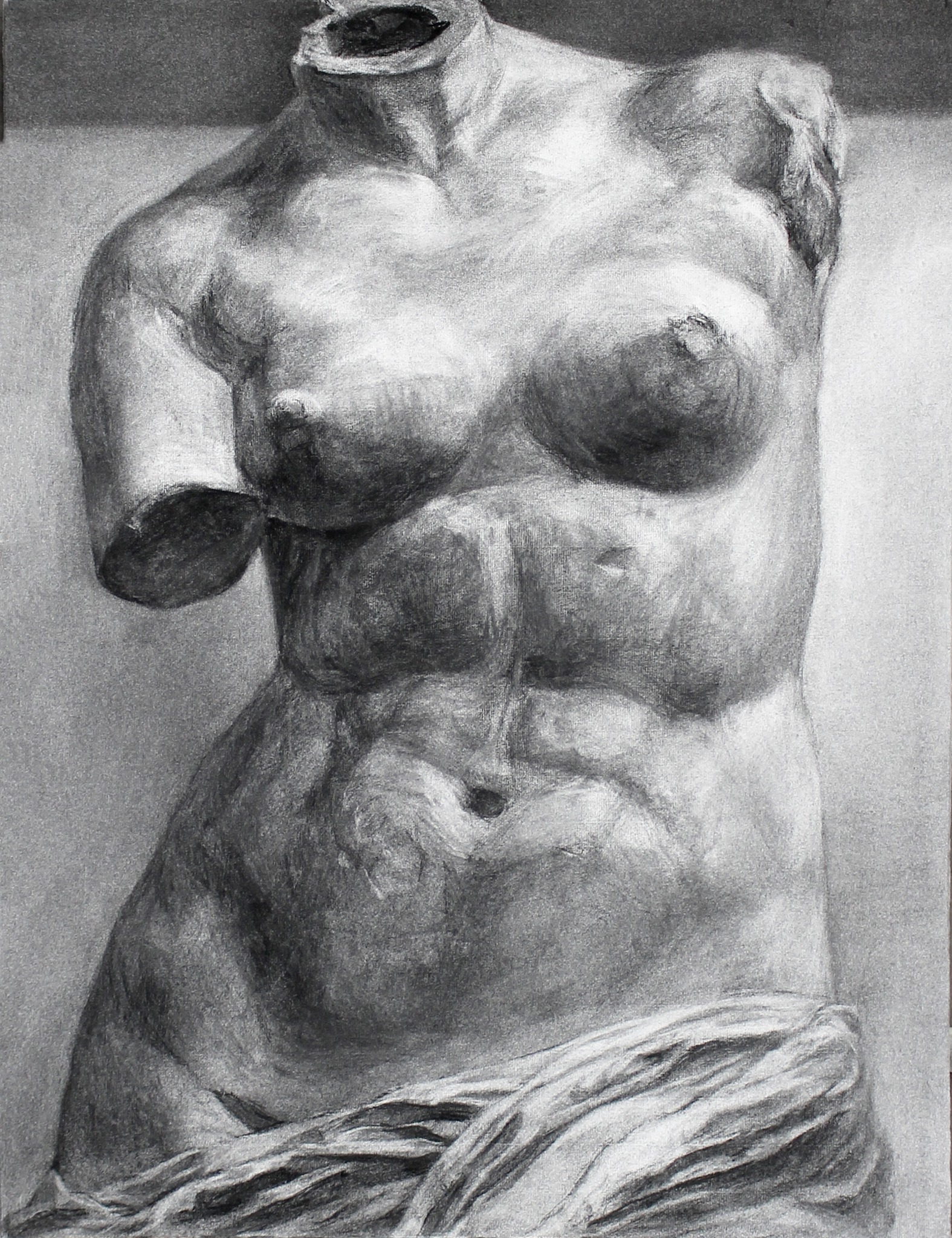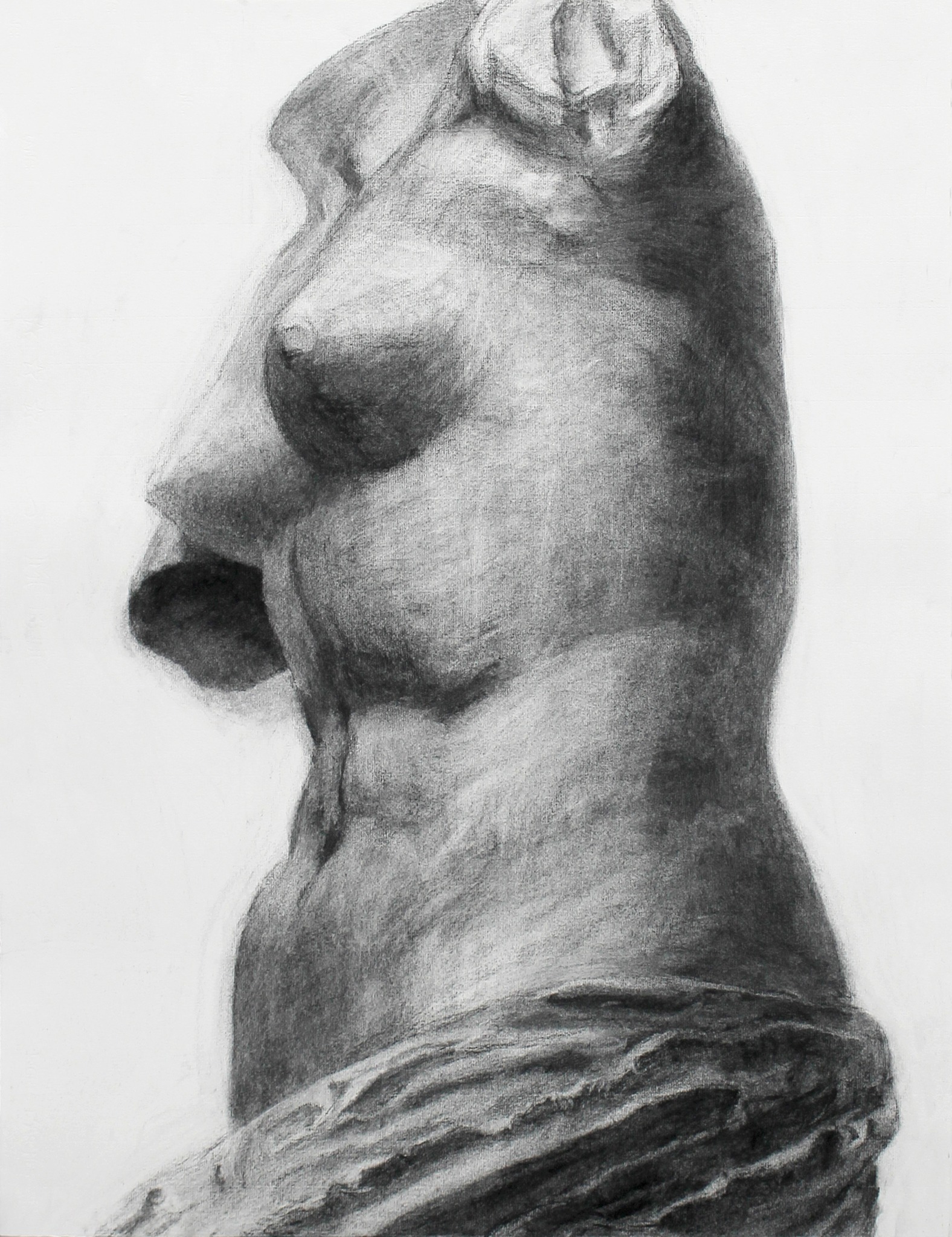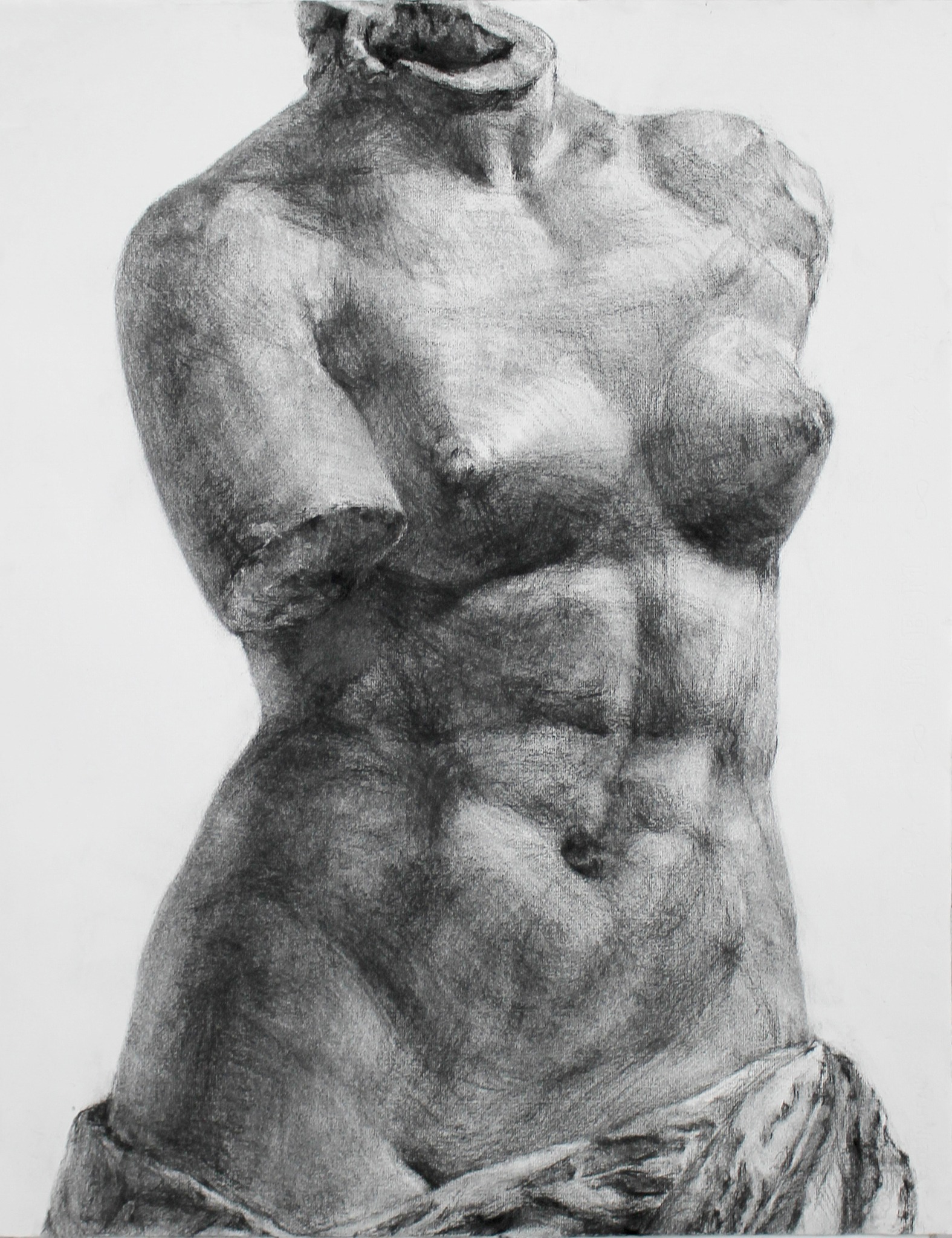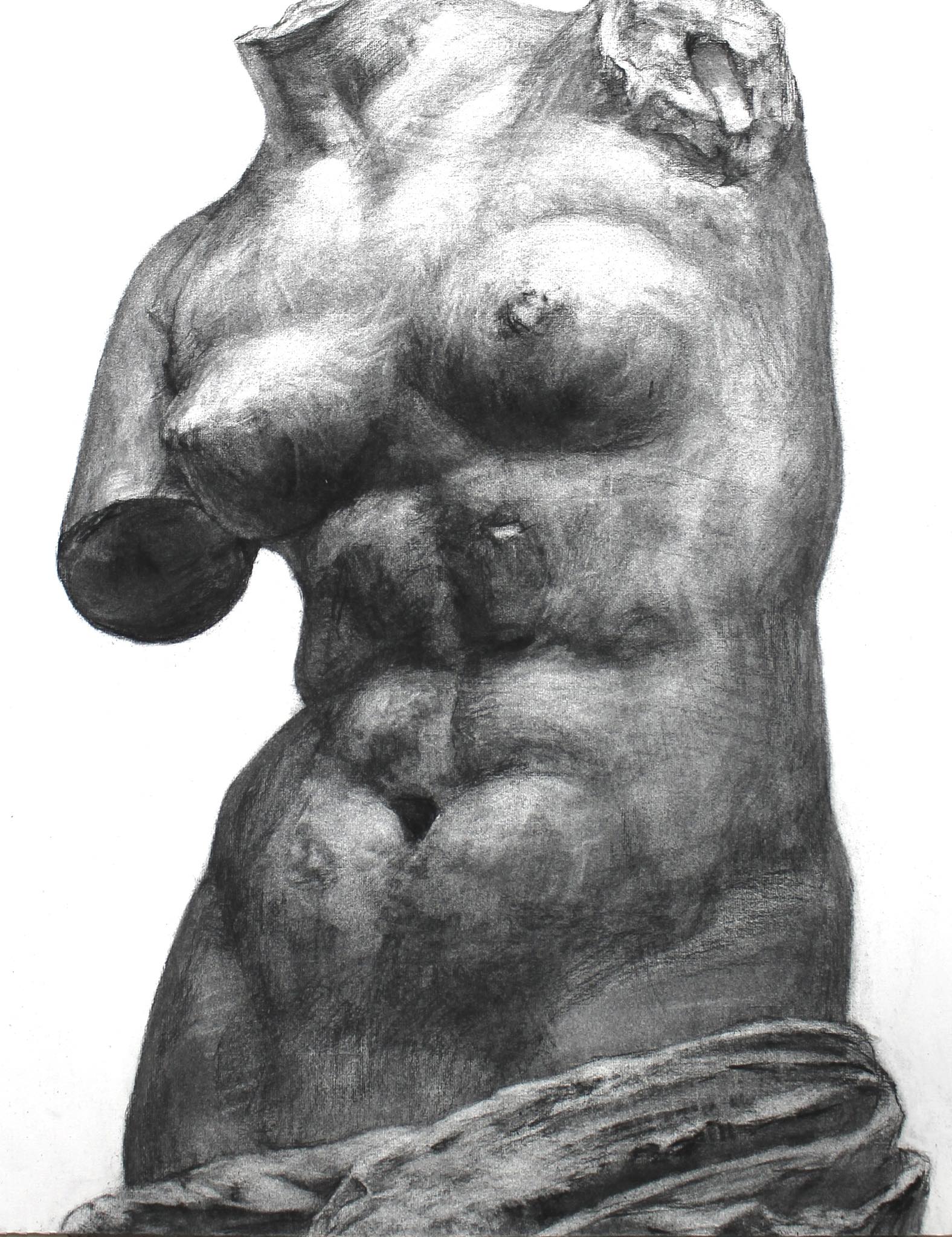 この4枚のミロのヴィーナスのトルソーのデッサンは全て基礎科の学生の作品です!