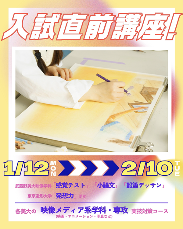 共通テストも終わり、いよいよ入試直前講座が本格的に始まっています。武蔵美映像学科の「感覚テスト」「小論文」「鉛筆デッサン」を中心として、志望校別、併願校対策も行う残り約3週間です!