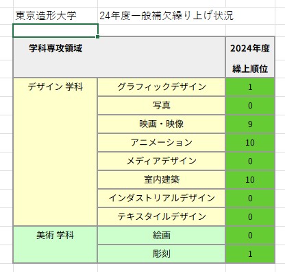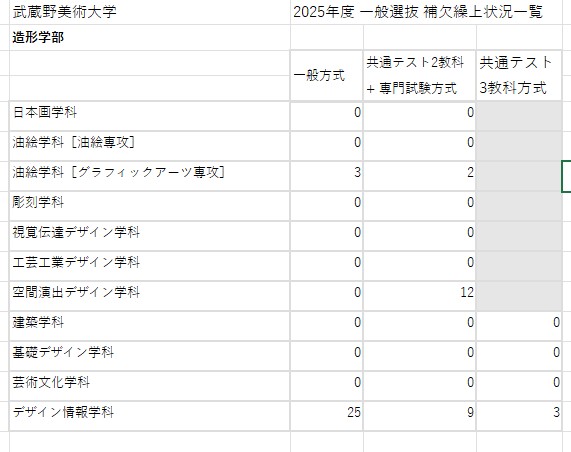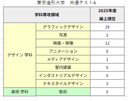 まずは試験の早かった東京造形大学の25年度は共通テスト型しかデータがないのでそれを