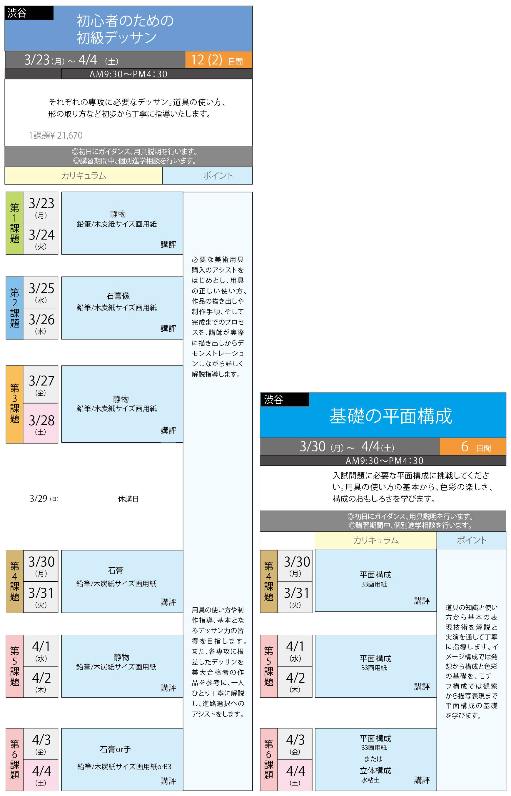 デッサンは3/23(月)~3/28(土)と3/30(月)~4/4(土)となっています。