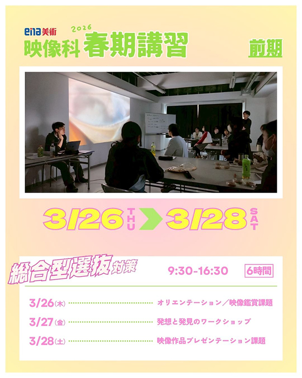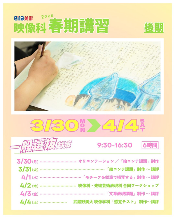 既に映像科の受験対策を始めている人も、完全にこの春が初めての人も、無理なく参加していただける内容になっています!