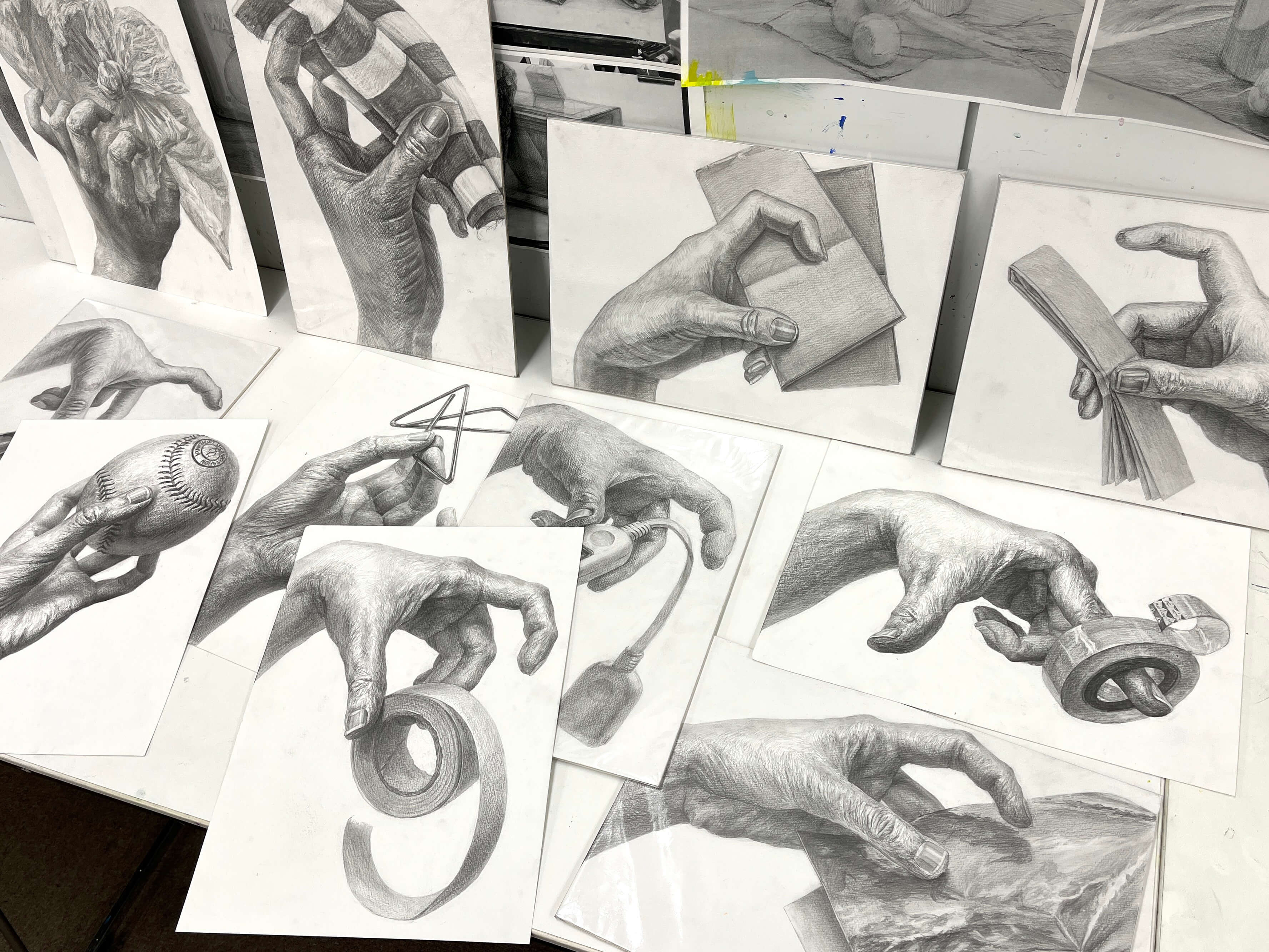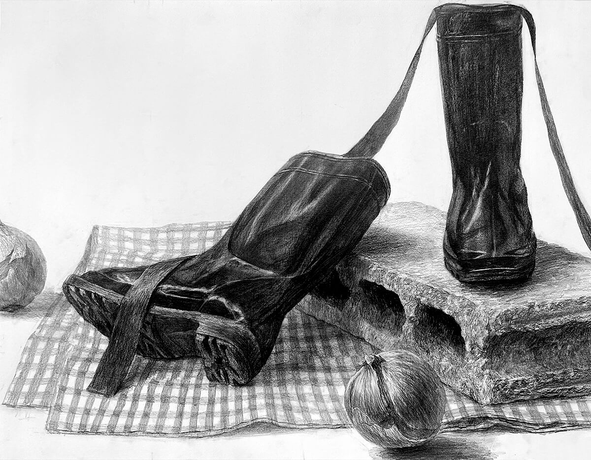 課題P:デッサン(鉛筆または木炭)、平面構成から1科目選択