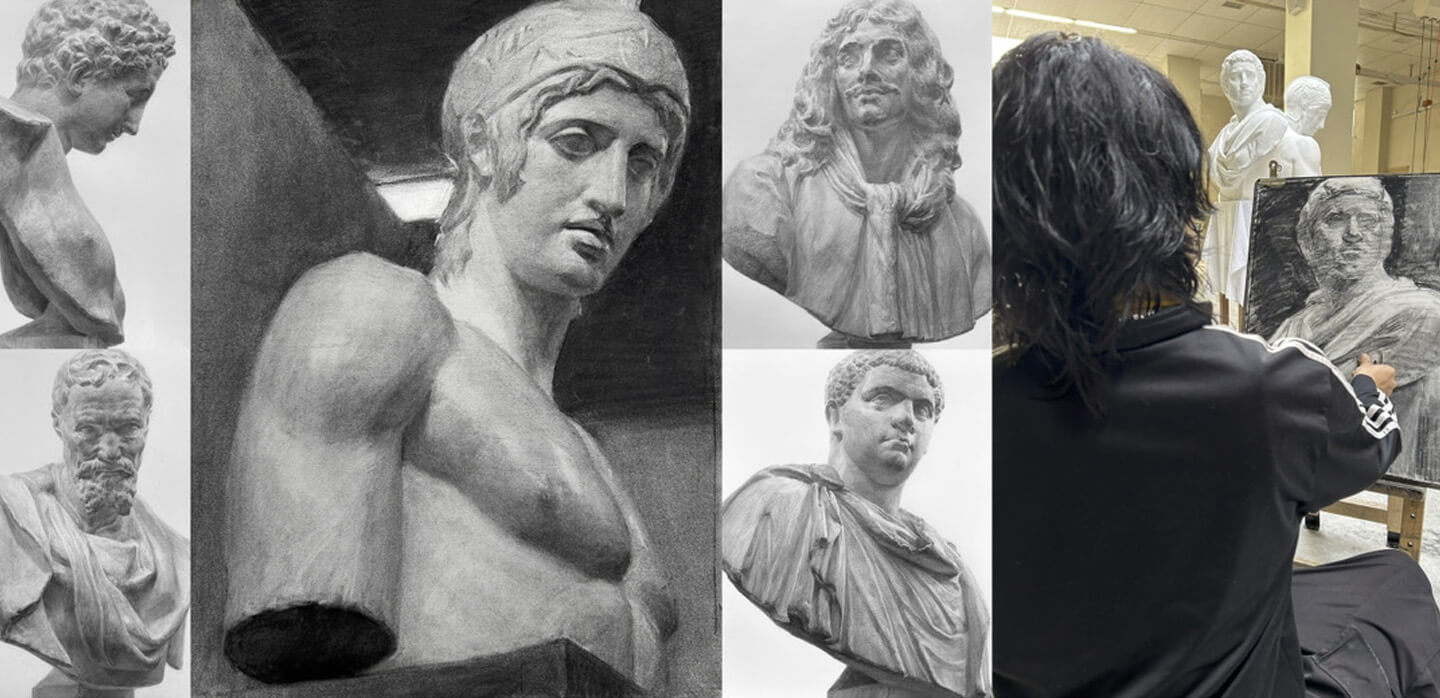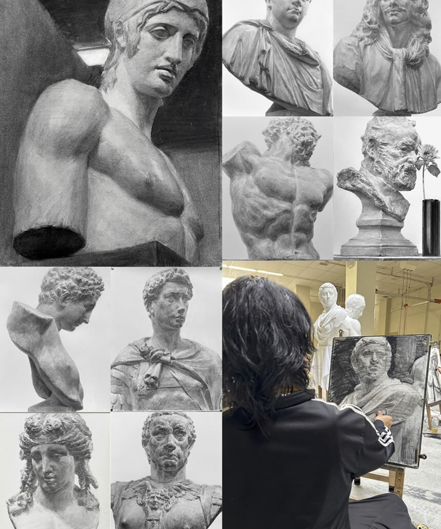 石膏像のデッサン(鉛筆と木炭から選択)・石膏像クロッキー・ドローイング尚、デッサン以外の課題にも対応することも可能です。お問い合わせください。